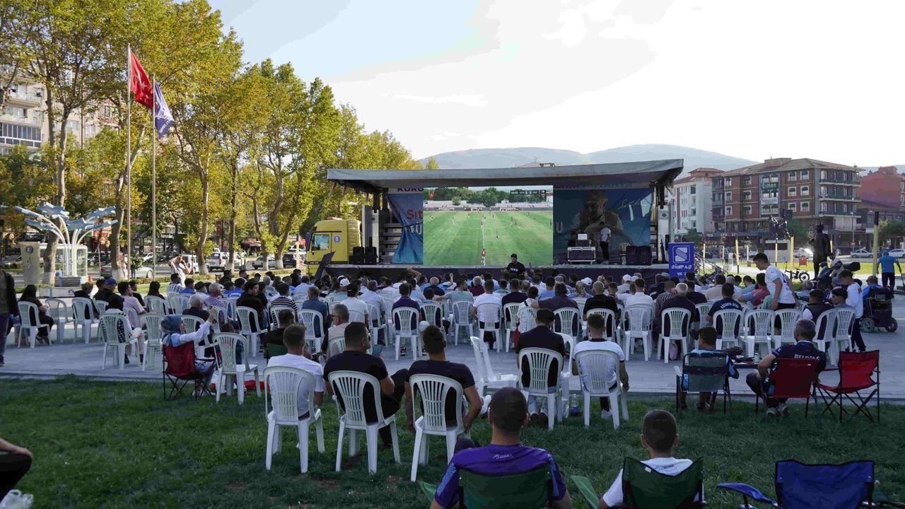 Taraftarlar ise Kütahya Belediye hizmet binası önüne kurulan dev ekrana akın etti.