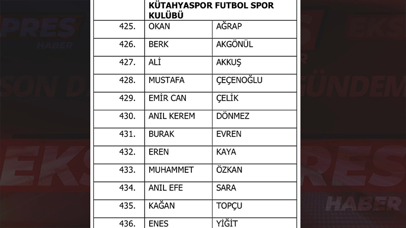 Buna göre, Kütahyaspor’dan 12 futbolcu da bu listede yer aldı.