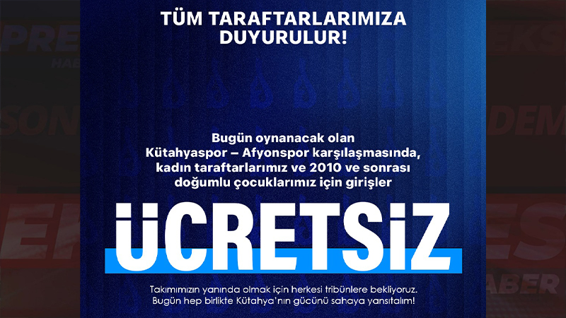 Kütahyaspor, bugün saat 16:00’da oynanacak olan Afyonspor karşılaşmasında kadın taraftarlarına ve 2010 ve sonrası doğumlu çocuklara jest yapacak.