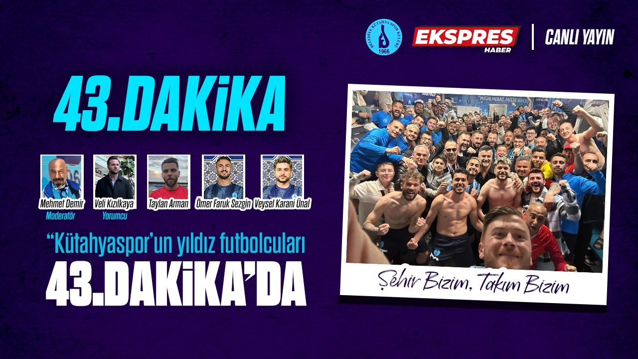 Moderatörlüğü’nü Mehmet Demir’in yapacağı, Kütahyasporlu eski futbolcu Veli Kızılkaya ve Kütahyasporlu yıldız futbolcuların katılacağı 43.Dakika programı Ekspres Gazetesi ve Kütahya Ajansı sosyal medya sayfalarından canlı olarak yayınlanacak.