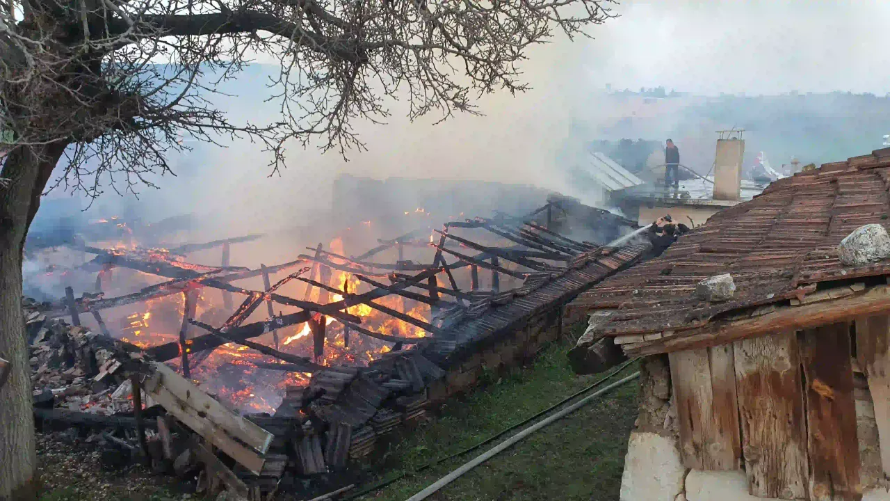BİR EV TAMAMEN YANDI, DİĞERİ HASAR GÖRDÜ
