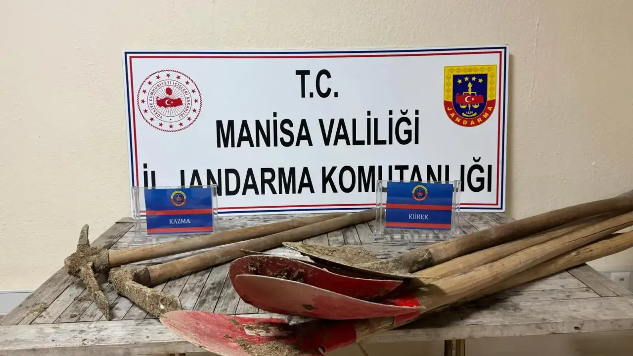 Manisa'nın Salihli ilçesinde, 1. derece arkeolojik sit alanında kaçak kazı yapan 9 kişi, jandarma ekiplerinin düzenlediği operasyonla suçüstü yakalandı. Salihli İlçe Jandarma Komutanlığı, bölgedeki yasa dışı kazı faaliyetlerini engellemek için harekete geçti. Operasyonda kullanılan kazma ve kürekler de ele geçirilerek delil niteliği taşıyan malzemelere el konuldu.