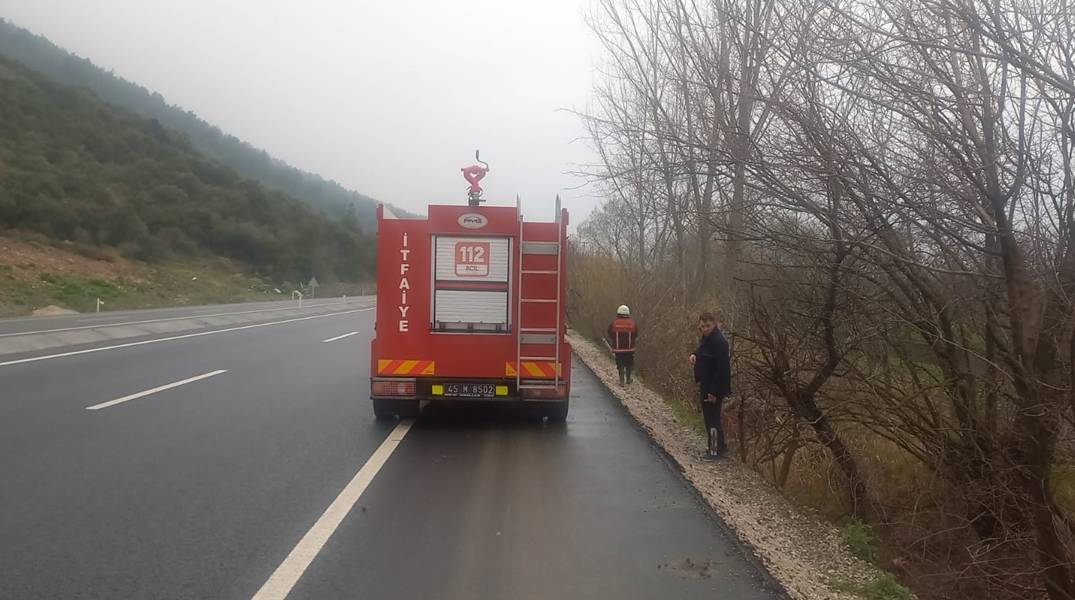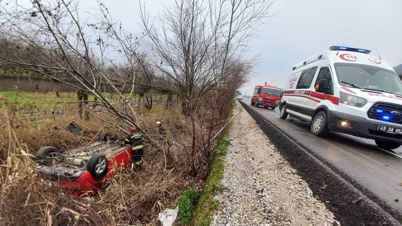 Manisa'nın Şehzadeler ilçesinde meydana gelen trafik kazasında, bir otomobil yol kenarındaki dereye devrildi. Kazada sürücü yaralandı.