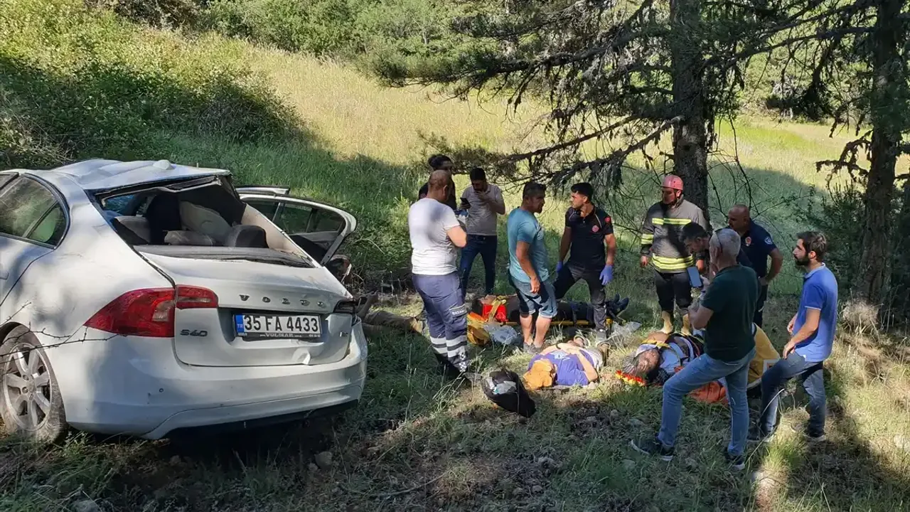 Manisa'nın Demirci ilçesinde uçuruma yuvarlanan otomobildeki 4 kişi yaralandı.