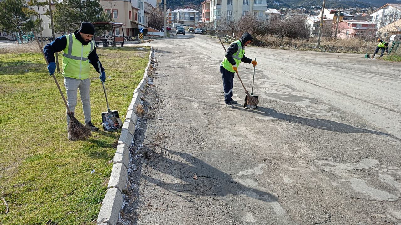 Yapılan çalışmalar kapsamında sokaklar süpürüldü, kaldırım kenarlarında biriken atıklar temizlendi.