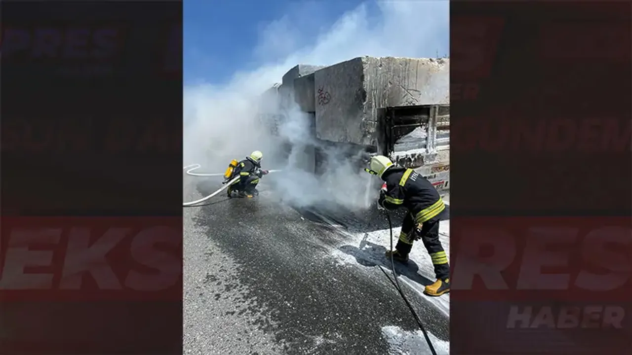 Alevleri fark eden sürücünün indiği tırdaki yangın kısa sürede büyüdü.