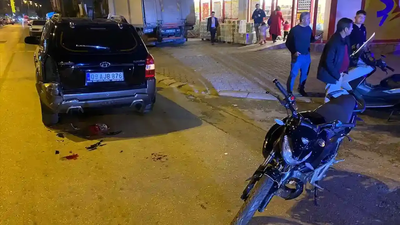 Edinilen bilgilere göre, S.D. idaresindeki 09 ALB 879 plakalı motosiklet, Yeşil Mahalle Atatürk Bulvarı'nda park halindeki M.D'ye ait 09 AJB 876 plakalı cipe çarptı. Çarpmanın etkisiyle yola savrulan motosiklet sürücüsü S.D. yaralandı.
