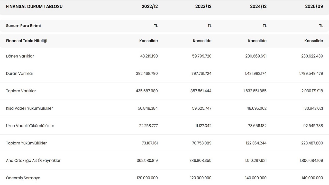 Özkaynaklarında önceki çeyreğe nazaran kısmi bir düşüş yaşayan firma 1,84 milyar liradan 1,8 milyar liraya geriledi. Şirketin borç rakamındaysa yüzde 238 oranında artış yaşandı ve 20,6 milyon liradan 70 milyon lira seviyesine geldi.