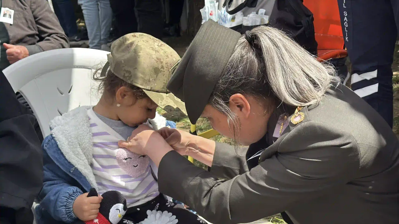 Törende duygu dolu anlar yaşandı. Şehidin 4 yaşındaki kızı Alya’nın kıyafetine, bir kadın komutan tarafından babasının fotoğrafı ve “şehit çocuğu” yazılı bir kart iğnelendi. Komutanın “Dikkat edelim, iğne sana batmasın” uyarısına Alya’nın verdiği cevap törene katılanların yüreğine dokundu: “Toplu iğne babama batıyor. Babaya batmadan kenardan yapalım.”
