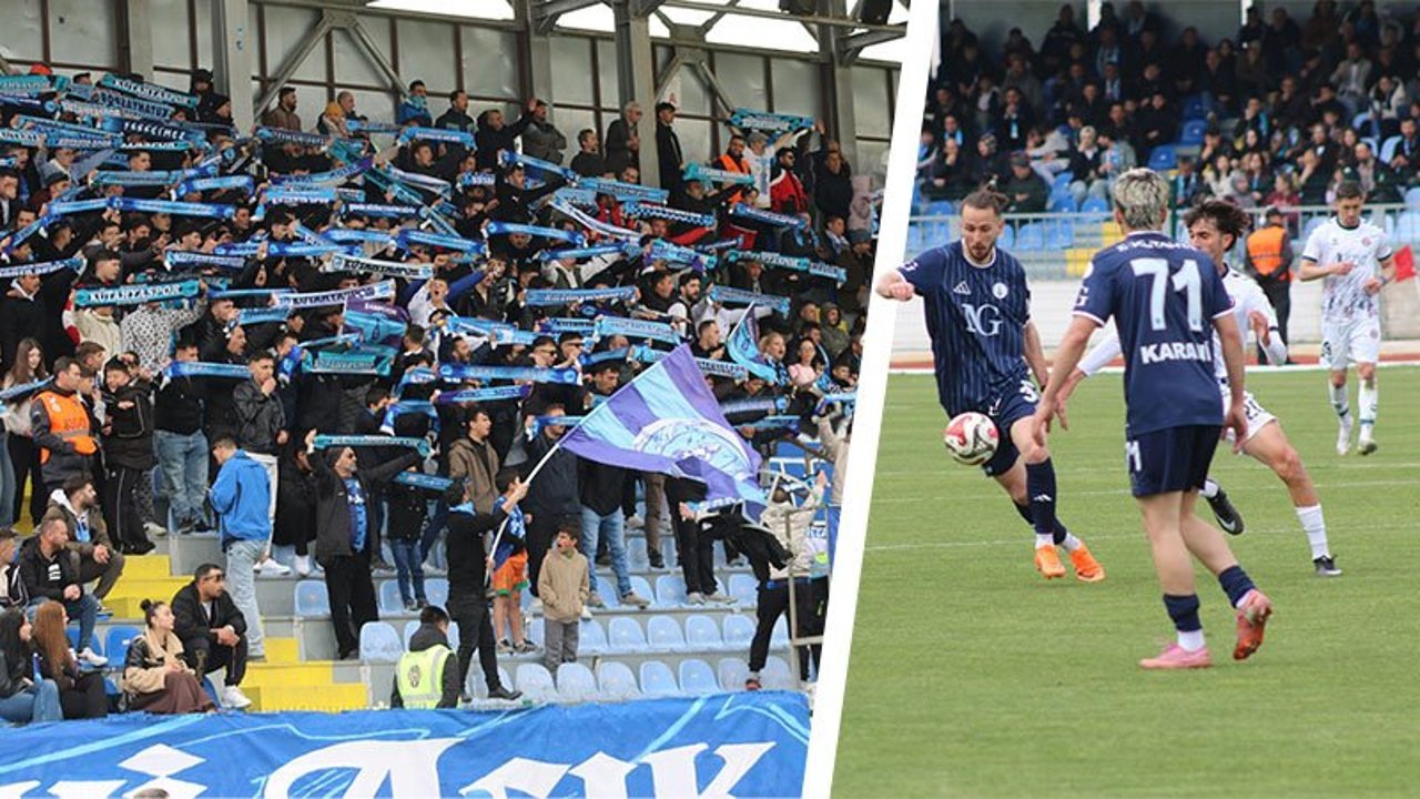 Maça binlerce taraftarının desteği ile başlayan Kütahyaspor, ilk dakikalardan itibaren şampiyonluk şarkıları ile takımına destek oldu.
