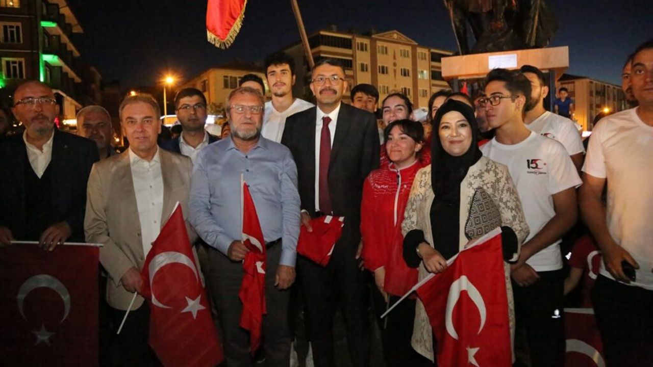 15 Temmuz Demokrasi ve Milli Birlik Günü etkinlikleri kapsamında 81 ilde eş zamanlı düzenlenen “15 Temmuz Şehitleri Sancak Koşusu” ile tören alanına ulaştırılan Türk bayrağı Vali Ali Çelik’e takdim edildi. Vali Çelik, “Şanlı bayrağımız gençlerimize emanet. Sonsuza kadar gökyüzünde dalgalanacak, hiçbir zaman düşmeyecek” dedi.