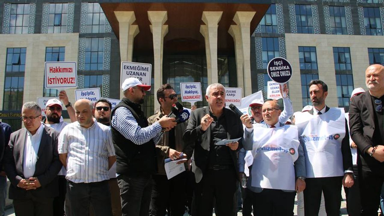 Hak-İş Sendikası öncülüğünde gerçekleştirilen protesto eylemine Sendika Genel Başkan Vekili Halil Özdemir de katıldı.