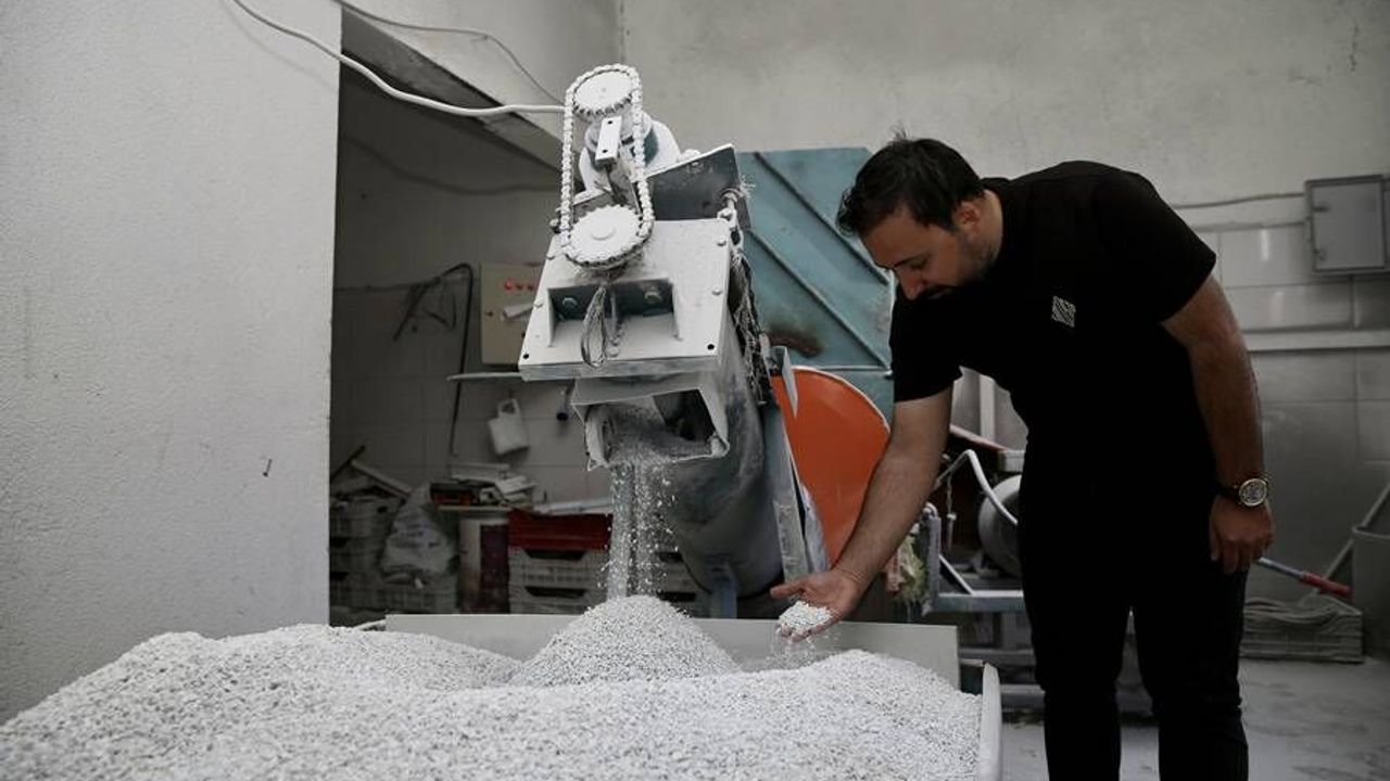 Üretimin tamamen geri dönüşüm mantığıyla yapıldığını ifade eden Otgöz, “Yüzde yüz geri dönüşüm yapıyoruz. Burada kullandığımız su bile israf olmuyor. Kullanılan suyu da geri dönüştürerek tekrar makinelerde kullanıyoruz” dedi.