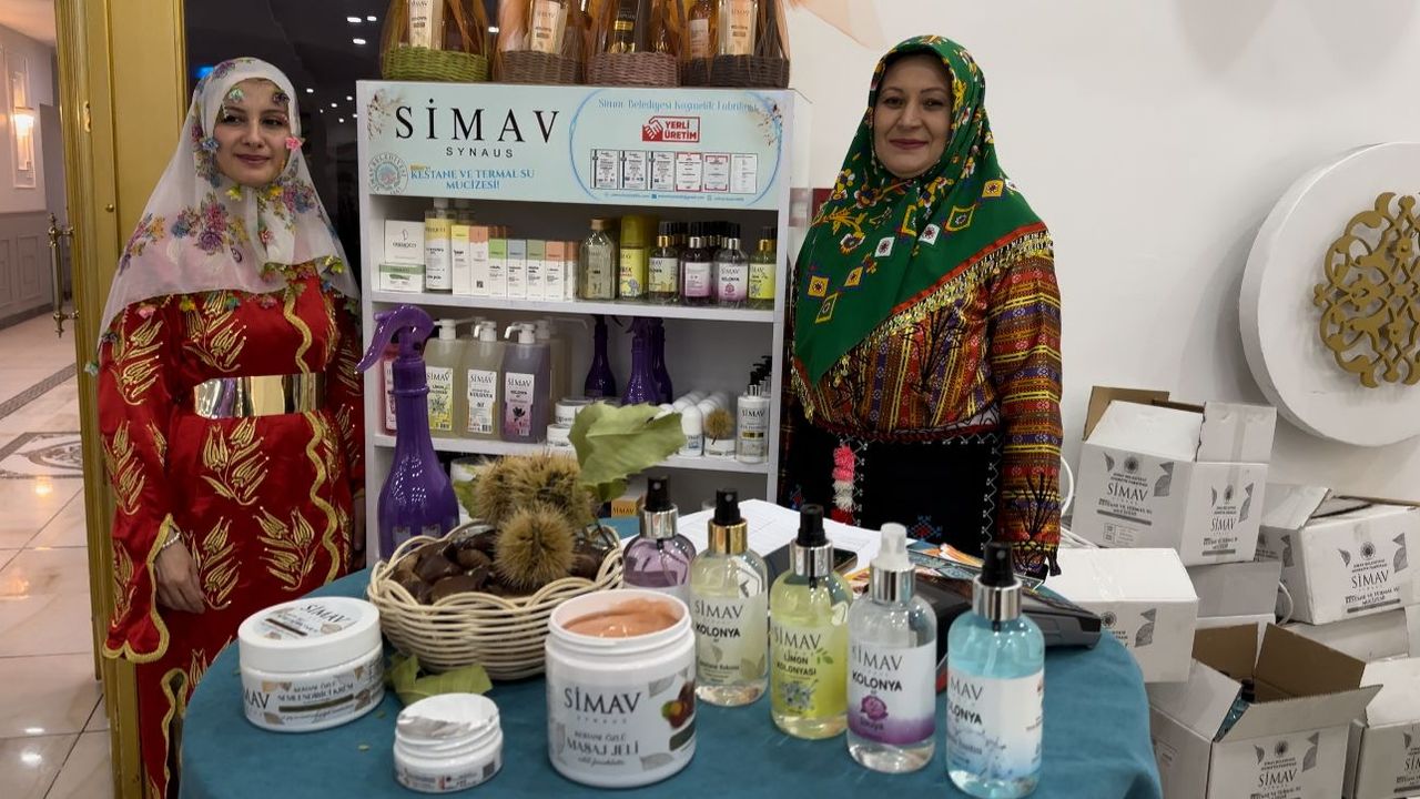 Parlak, kolonya, termal sulu kestane kremi, nemlendirici krem, güneş kremi, duş jeli gibi üretimlerini sergilediklerini ifade etti.