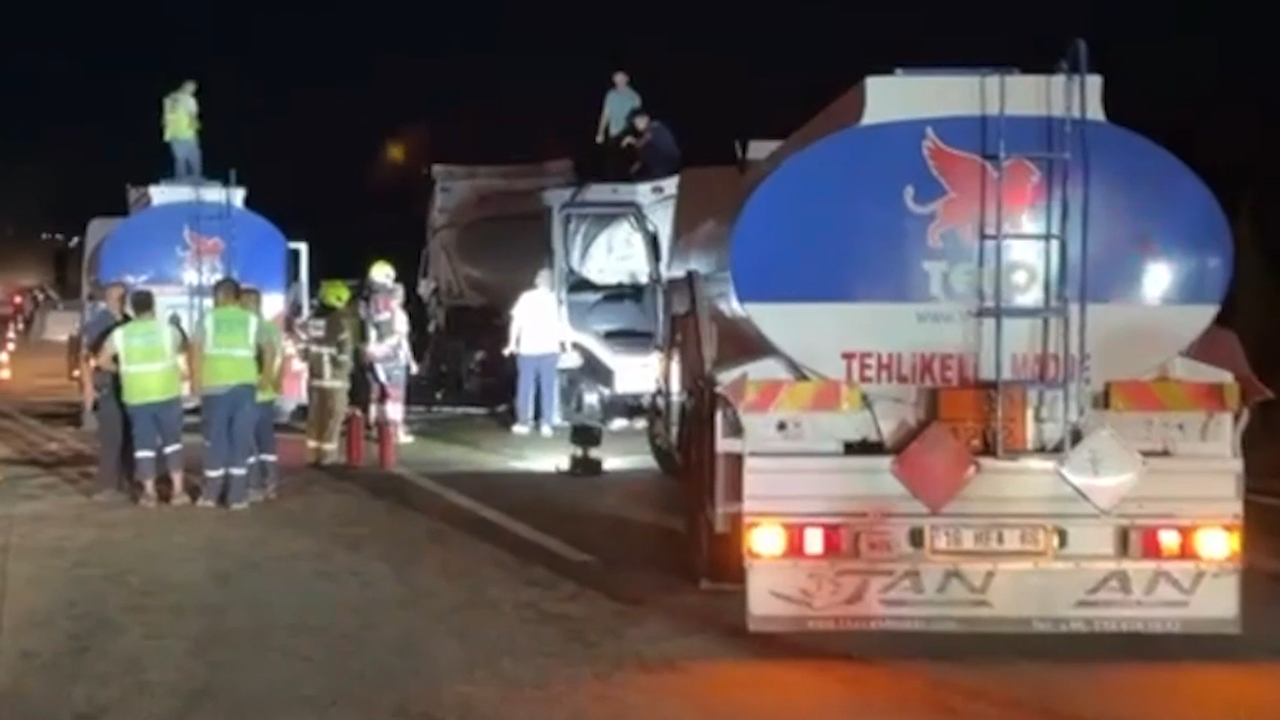16 DT 741 plakalı akaryakıt tankerinin lastiği patlayınca sürücü Serdar Lafçı aracı emniyet şeridine çekti. Bu sırada aynı güzergahta ilerleyen İlhan Aydemir yönetimindeki 34 LK 5339 plakalı tır, duramayarak tankere çarptı. Beton künk yüklü tırın çarpmanın etkisiyle devrilmesi sonucu hem araçta hem de yolda maddi hasar meydana geldi.