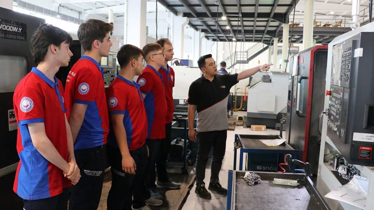 "İş insanı Şeref Kazcıoğlu bu projeye sahip çıktı ve otomotiv sektöründeki fabrikasını öğrencilerimize açtı. Haftanın her günü sadece 11 ve 12. sınıftaki öğrencimiz eğitim öğretimlerine devam edecekler. Öğrencilerimiz tüm eğitimlerini fabrikanın içerisindeki derslikte görüyor. Öğrencilerimiz fabrika atölyelerinde modern aletleri, makineleri burada kullanma şansı buluyor. Bunların operatörlerini öğreniyorlar. Bizim amacımız sektöre ciddi anlamda yetişmiş insan kazandırmak. Fabrikamızın sahipleri aynı zamanda öğrencilerimize iş garantisi veriyor ve burs imkanı sağlıyor. Yani eğitim öğretim hayatları boyunca burada harçlıklarını da alacaklar."