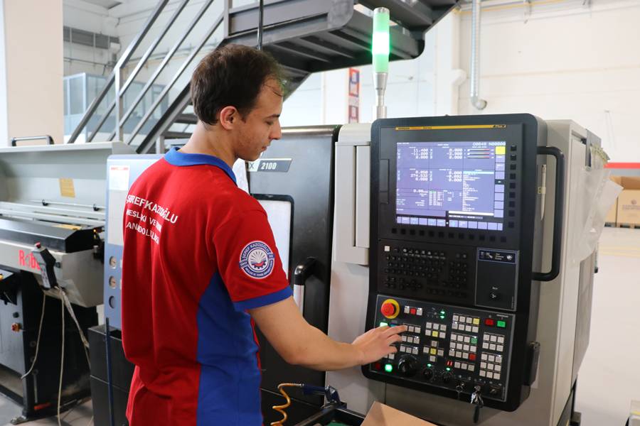 Fabrikadaki okulda eğitim gören 11. sınıf öğrencisi Fatih Sunal, makinelerin yanında uygulamalı eğitim almalarının mesleği daha hızlı öğrenmelerini sağlayacağını belirtti.