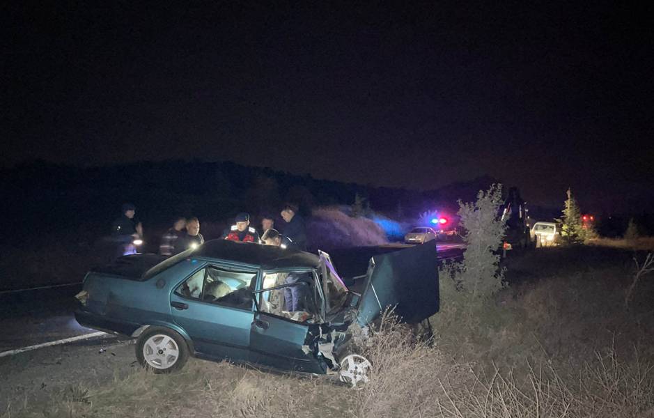 Uşak’ta kepçeyle çarpışan otomobilde baba yaşamını yitirdi, oğlu yaralandı.