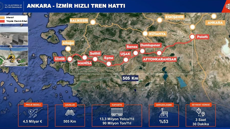 Proje kapsamında, Ankara–İzmir arası seyahat süresi 3 saat 30 dakikaya düşecek. Hattın yıllık 13,3 milyon yolcu ve 90 milyon ton yük taşıma kapasitesine ulaşması hedefleniyor. Çalışmalarda yüzde 53 fiziksel gerçekleşme sağlandı.4,5 milyar avroluk yatırım, bölgenin ulaşım altyapısını modern standartlara kavuşturacak.