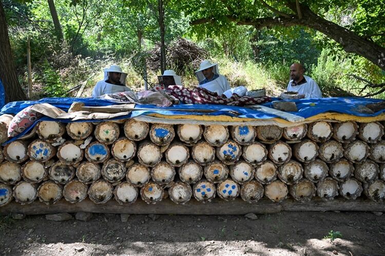 Van’ın Çatak ilçesinde 2 bin 700 rakımda üretilen karakovan balının hasadına başlandı.