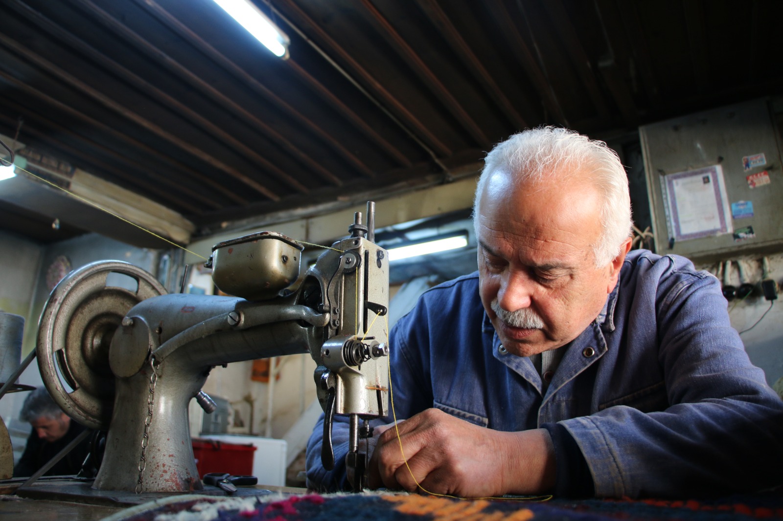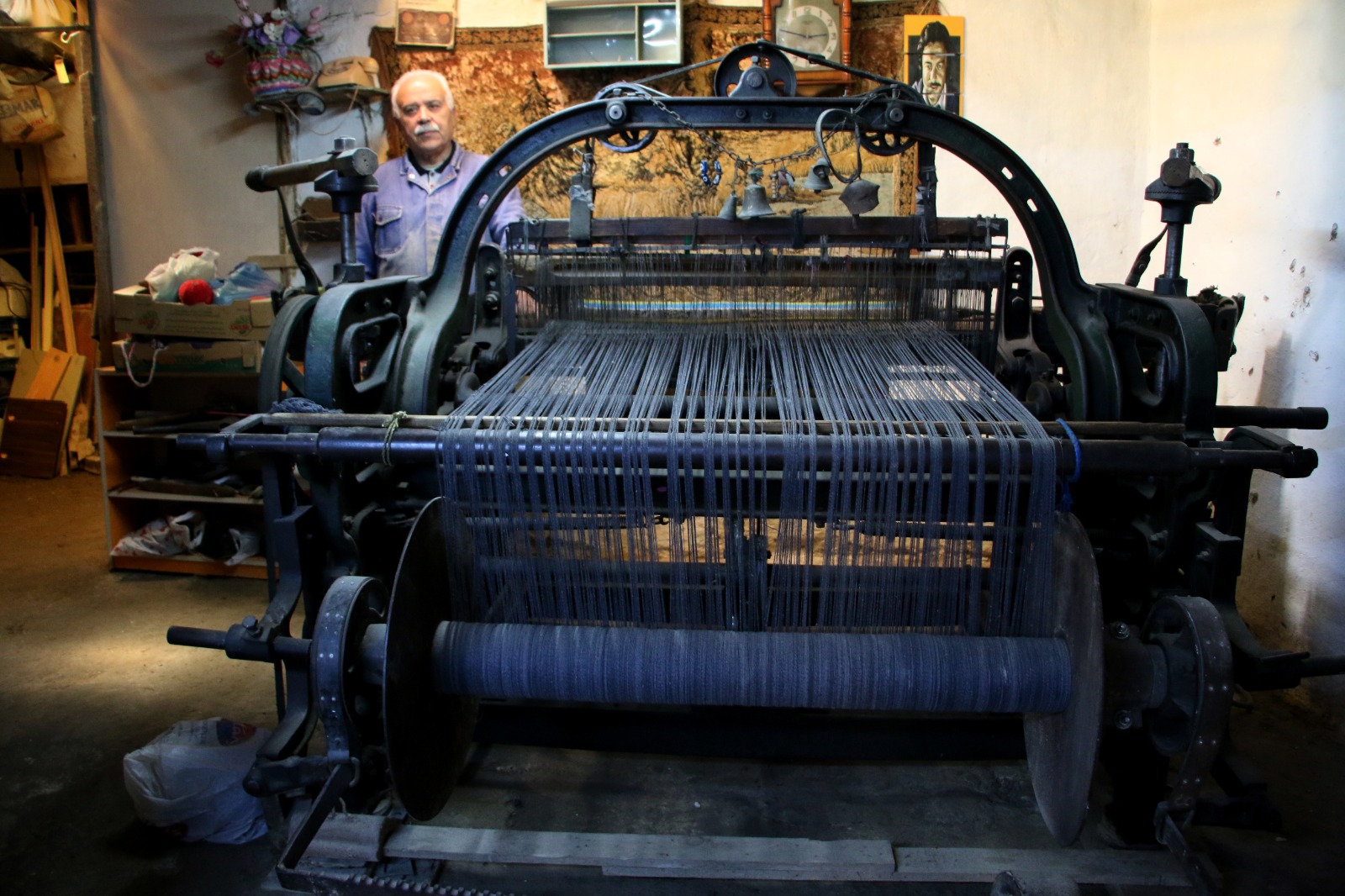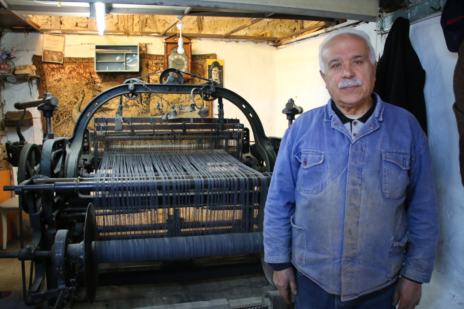 Burada halı tamir ederim, söküntü orlonlardan kilim dokurum. Overlok yaparım. Kilimden heybe ve çantalar yaparım. Minder yaparım. Bütün geçimimi bu şekilde sağlıyorum." dedi. Aynı atölyede 40 yıldır çalıştığını dile getiren Akkan bu zanaatın ustalarının sayısının azaldığını, yetiştirecek çırak bulamadığını ifade etti. Almanlar tarafından 1800'lerin sonlarında imal edilen eski bir makineyle 45 yıldır çalıştığını anlatan Akkan şöyle konuştu: "Dokuma yaptığım tezgah Alman malı 100 yıllık çok sağlam bir makine. Ben tezgahımdan çok memnunum. Dükkanıma hırsızlar girip makinenin bazı parçalarını çalmışlar. Yerine taktığım parçalar orijinal olmadığı için son 1 yıldır makineyi tam randımanla kullanamıyorum. Bu makine Türkiye'ye bir tekstil şirketi tarafından getirilmiş. Ben bu makinenin beşinci sahibiyim. Tezgahta çalışırken büyük keyif alıyorum. Bu makineye 'atar top' diyorlar. Bu makine kaşe, branda, yolluk, tiftik, battaniye dokuyabiliyor." Dokuma tezgahlarında eski makinelerin artık kullanılmadığını aktaran Akkan bu işin teknolojik bilgisayarlı makinelerde yapıldığını vurguladı. Veli Akkan, mesleği öğrenmek isteyen birisine dokuma tezgahını miras olarak bırakabileceğini, çırak yetiştiremezse makineyi bir müzede sergilenmesi için devlete bırakmayı vasiyet edeceğini sözlerine ekledi.