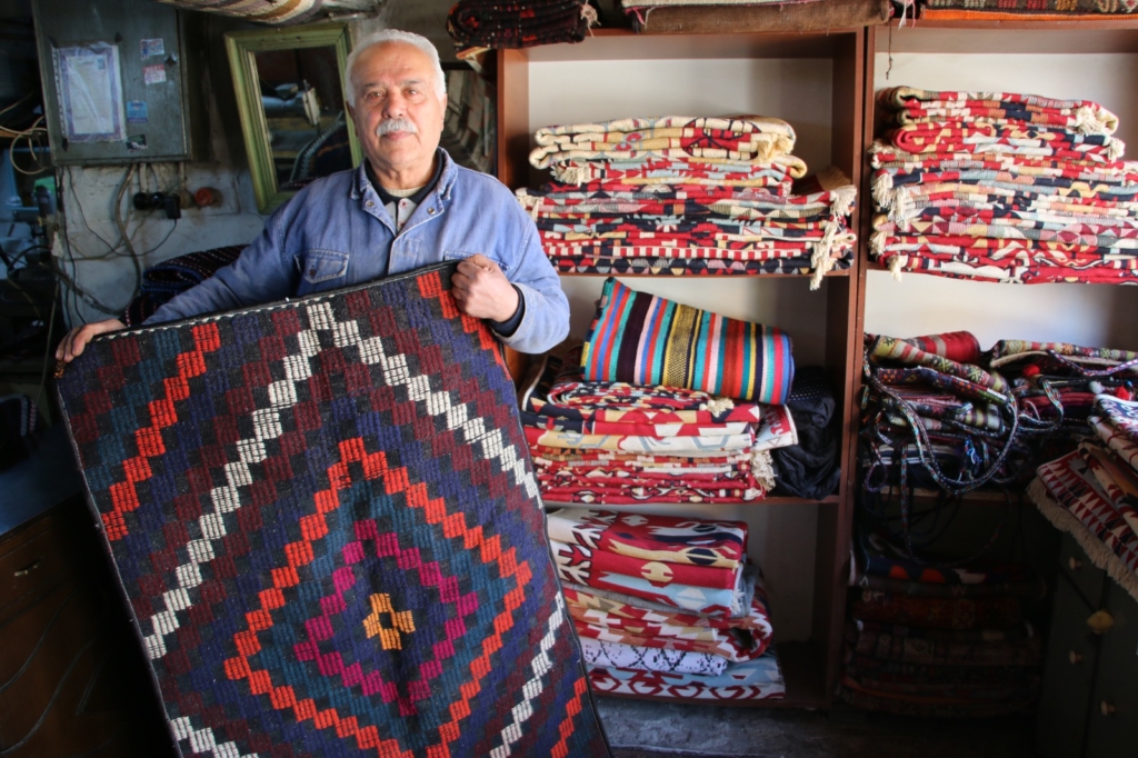 Kütahya'da yaşayan dokuma ustası Veli Akkan, geçmişi 100 yılı aşan tezgahında 45 senedir kilim, paspas, yolluk, heybe, çanta gibi ürünler yapıyor.