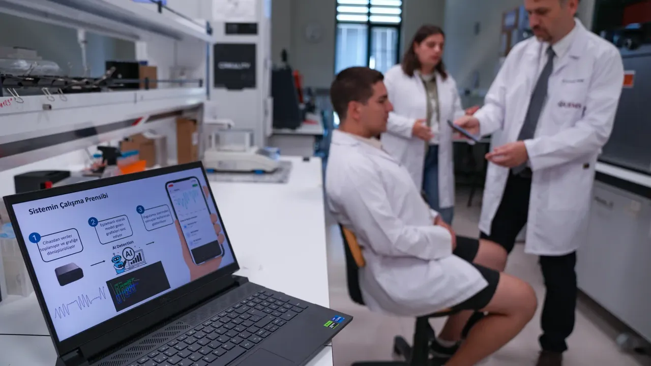 İzmir Yüksek Teknoloji Enstitüsü (İYTE) Biyomühendislik Bölümü’nden Doç. Dr. Hüseyin Cumhur Tekin ve ekibi, uyku apnesi teşhisini hastaneye gitmeden evde yapabilen yapay zeka destekli bir cihaz geliştirdi. Taşınabilir ve ergonomik yapısıyla öne çıkan cihaz, uyku sırasında diyafram hareketlerini sensörler aracılığıyla takip ediyor. Toplanan veriler, yapay zeka algoritmalarıyla analiz edilerek doktora dijital ortamda raporlanıyor.